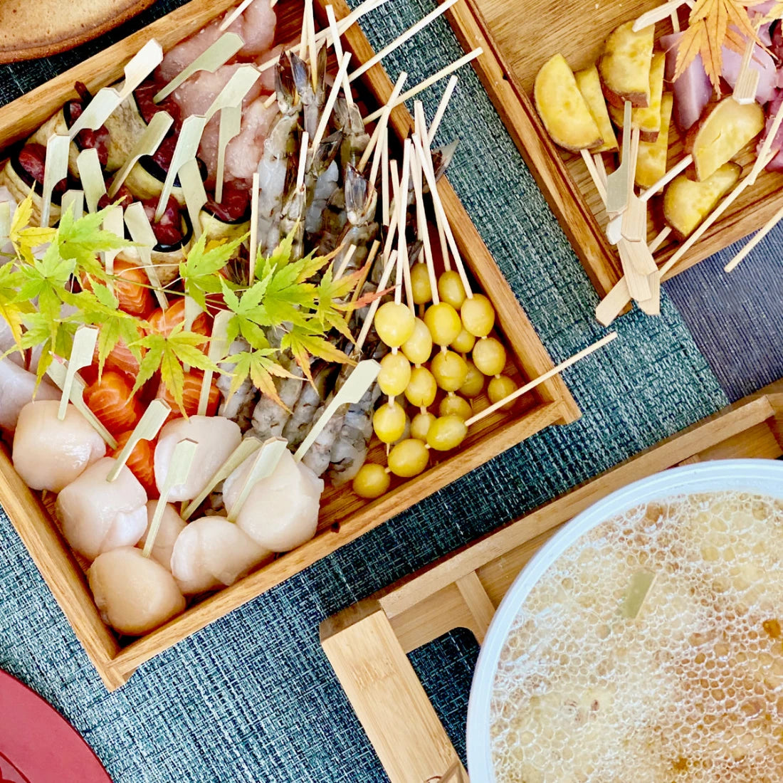 串揚げ10品 (旬食材や変わり種などお任せ) アレンジソースなどを召し上がっていただきながら●素材の旨味を活かす下拵えのコツ●サクッと揚がる薄衣の付け方など、お伝え致します。揚げ物調理がもっと楽しくなる料理教室です。