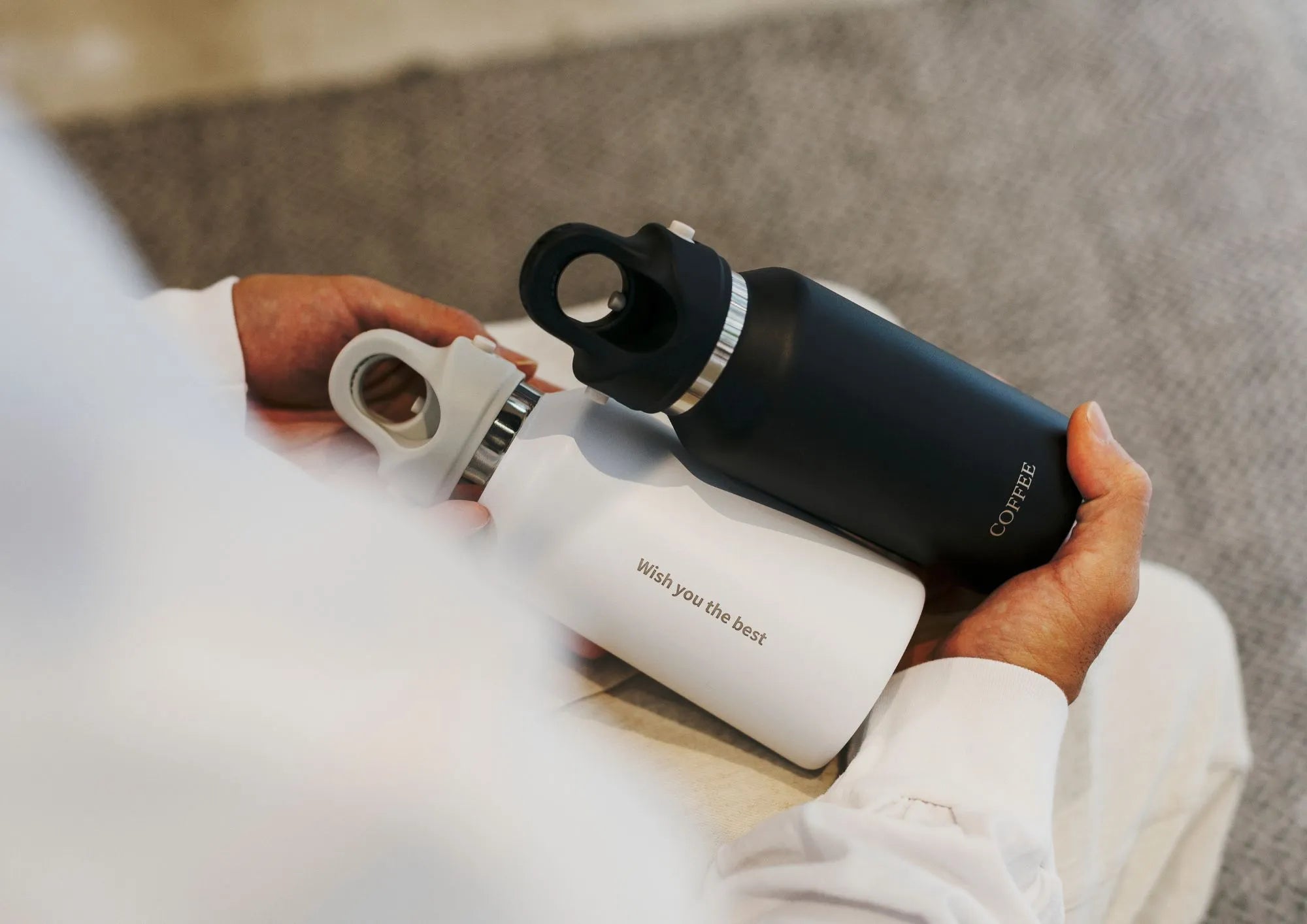 「LEAVES COFFEE」のDaily Lineで、贅沢なコーヒータイムを演出。REVOMAXのボトルをセットにすれば、毎日のコーヒータイムがエコで快適に。 ※9oz / 12oz Slimサイズのみ