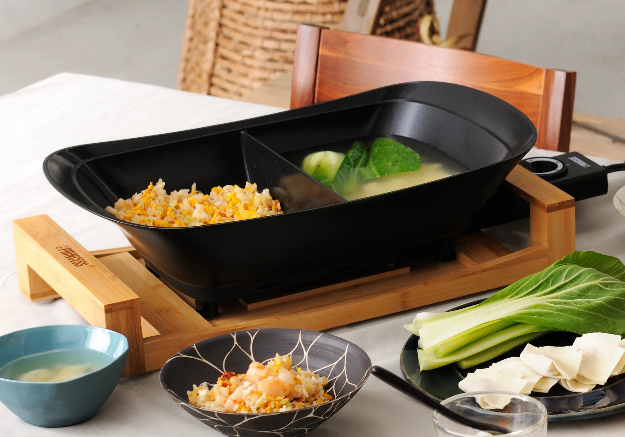 具材は同じで最後の味付けを変更したり、全く違うメニューを調理したり、一度に2種のメニューを楽しめます。
